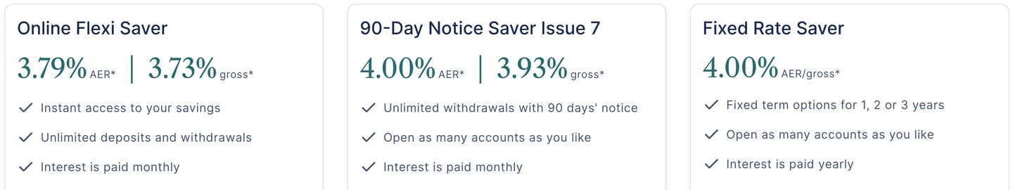 The 90-Day Notice Saver currently offers a variable rate of 4% AER. Withdrawals require 90 days' notice, making this product more suitable for savers who can plan ahead and are comfortable with limited access to their funds.