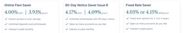 The 90-Day Notice Saver currently offers a variable rate of 4.17% AER. Withdrawals require 90 days' notice, making this product more suitable for savers who can plan ahead and are comfortable with limited access to their funds.
