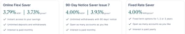 The Online Flexi Saver provides a variable interest rate of 3.79% AER, allowing you to access your money at any time without notice. This may appeal to those who want to earn interest while keeping their savings easily accessible.